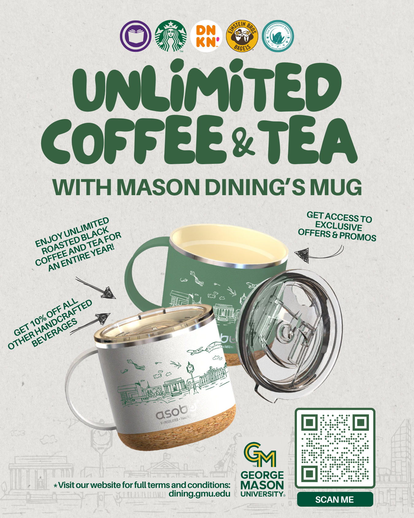 The mug was produced in two color variations, ensuring versatility while maintaining consistency with Mason Dining’s brand and overall campus aesthetic.